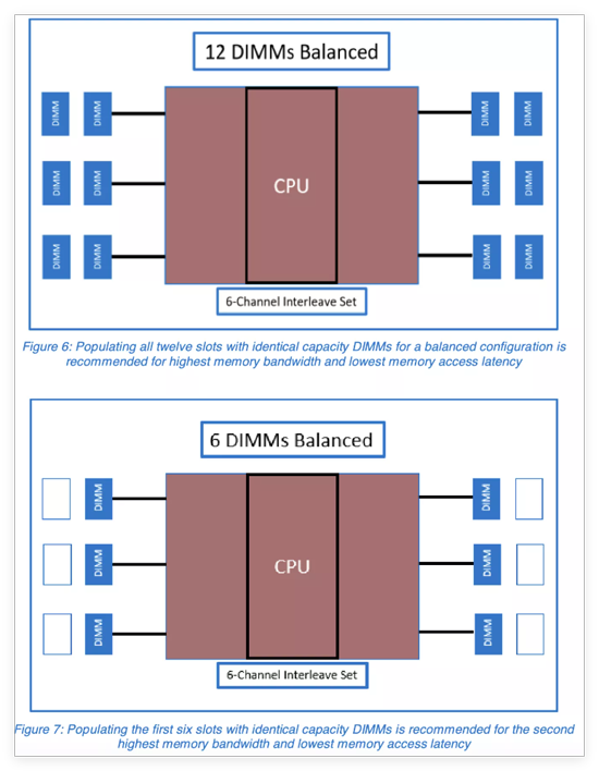 Dell EMC 白皮书《 与第二代英特尔® 至强™ 可扩展处理器平衡内存》 以图形方式展示了内存通道的首选内存配置以及如何最好地填充内存(图 6,每个通道两个内存条是理想的)。