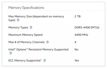 Intel Ark 详细说明了处理器的内存支持情况。