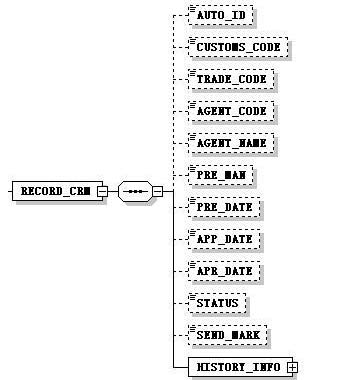 整个系统之间是通过各自独立的Windows服务监控自己的数据库,对应表发生变更以后,生成变更后的XML报文,通过路由设置由MQ消息队列把报文发送到接收端,接收端服务接收到MQ报文以后,对接收的XML报文解析进入接收端数据库。各个报文定义使用Schema定义来完成,只有符合Schema规则定义的报文才可以进入消息队列来进行传输。例如客户关系Schema报文定义如(图2)所示,只有符合Schema格式的报文才可以生成XML报文进行传输。