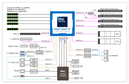 12根/12通道/最大3TB DDR5-6400 RDIMM |