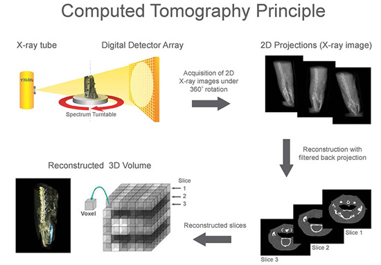 - 投影算法:通过投影算法将投影图像转换为线性方程组,然后使用最小二乘法来求解三维图像,计算量较大,通常采用多核计算。