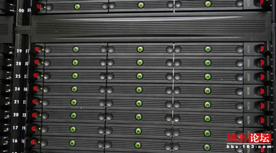 工程师打开机柜,一层层的刀片机引入眼帘。经工程师介绍,每一片上有两颗处理器,每颗处理器有16个物理核心,每颗处理器配备了16GB DDR3内存。